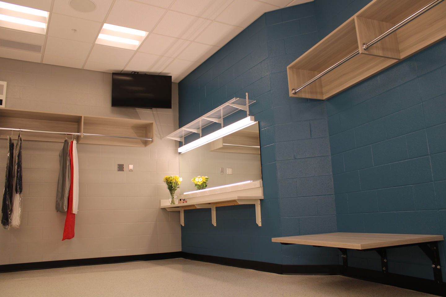 Previously lacking any backstage support, the new addition includes dressing rooms, restrooms, a sprinkler/utility room, equipment storage, and a dedicated loading area—dramatically improving function and flow. A new connection corridor links the band room to the stage, with enhanced green room and access areas that support seamless music department integration.